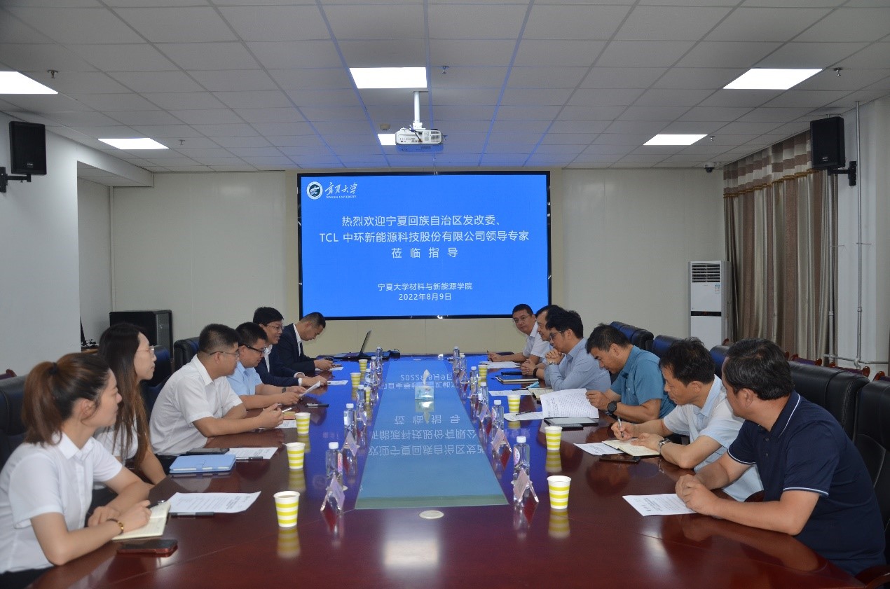 的基本情况和人才培养与科研情况,杨永生介绍了TCL中环新能源科技股份有限公司的基本情况,海涛对自治区光伏及半导体产业的整体情况做了简要说明。校企双方就未来在光伏材料及新能源等领域进行合作的潜力和形式了深入交流。