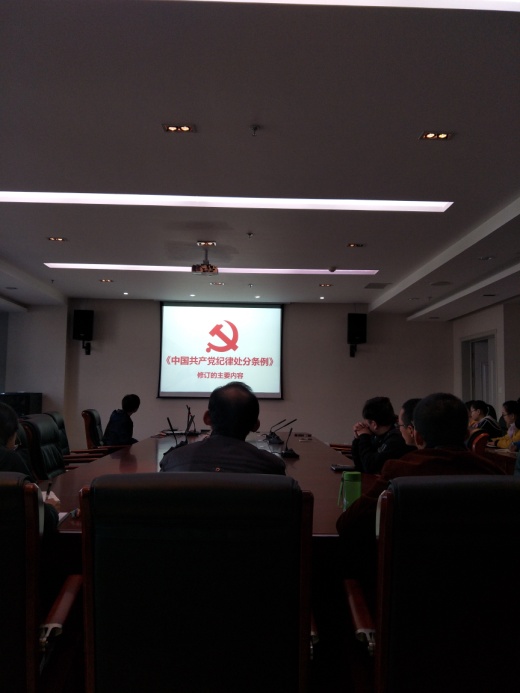 2018年11月02日上午,宁夏光伏材料重点实验室党支部召开支部大会,专题学习新修订的《中国共产党纪律处分条例》(以下简称《条例》)。全体师生党员参加。由支部书记何力军同志领学。