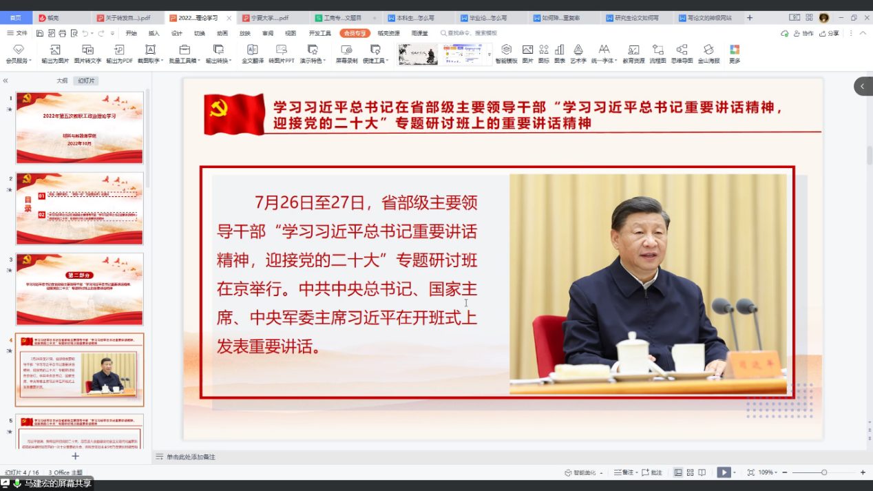 首先,马建宏书记带领大家学习了习近平总书记在省部级领导干部“学习习近平总书记重要讲话精神,迎接党的二十大”专题研讨班上的重要讲话精神。