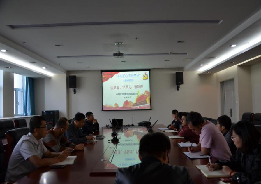 2019年9月25日,中共宁夏光伏材料重点实验室党支部在科技楼A610会议室召开“不忘初心、牢记使命”主题教育,开展“读原著学原文悟原理”专题学习活动,全体师生党员参加。会议由支部书记何力军同志主持。