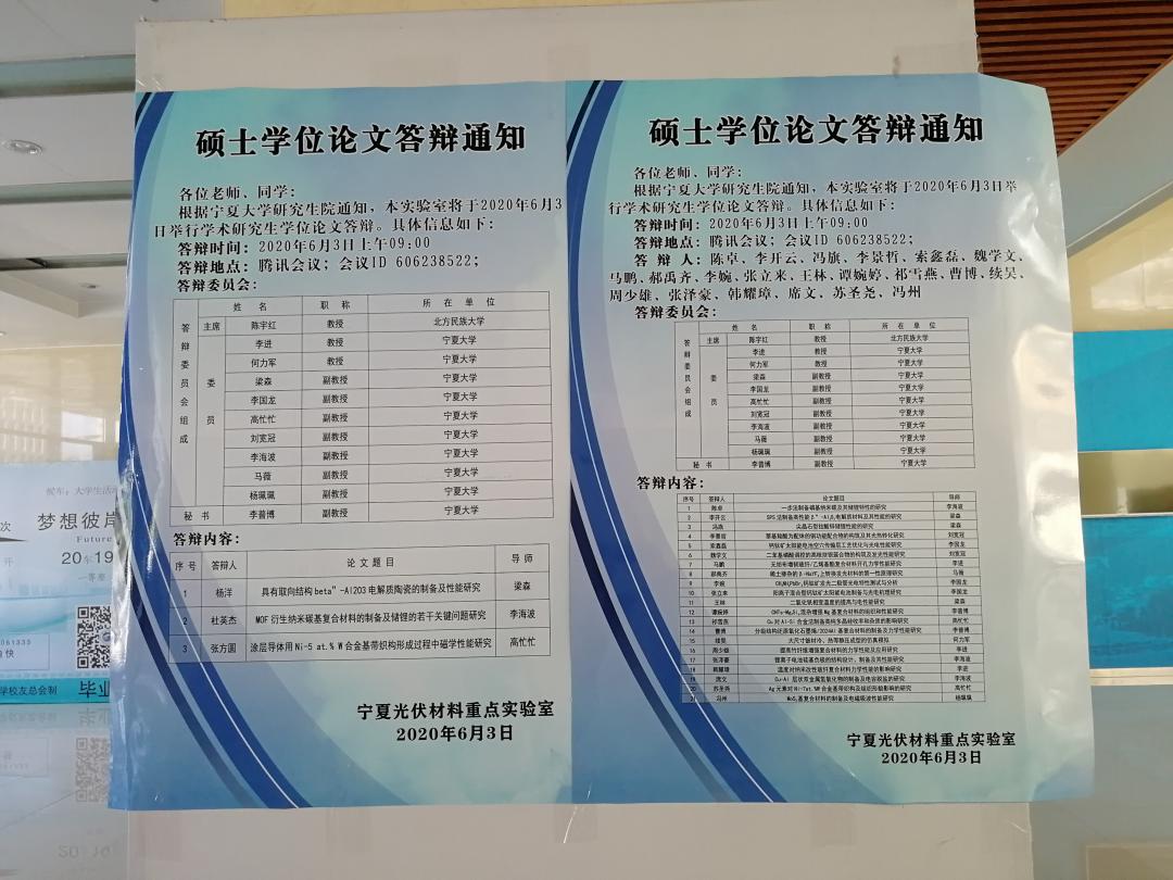 进入新冠疫情防控常态化阶段以来,宁夏光伏材料重点实验室严格遵守和落实学校有关文件会议精神和要求,一方面做好疫情防控工作,一方面有序推进教学科研工作的开展。2020年6月3日,2020届首次硕士研究生学位论文答辩工作在网上进行,分散在全国十几个省区共24名同学参加了答辩。答辩委员会成员参会地点在ebook漫画