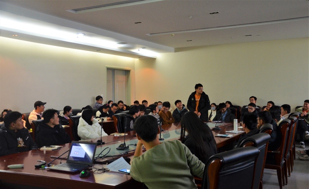郭明轩同学讲到,研究生分会在过去一年的工作中,较好地完成各项工作,包括:与实验室团支部一起,向实验室党支部推选多名入党积极分子和发展对象候选人;吸收多名先进分子加入党组织;疫情期间配合学校做好疫情防控工作的同时,重视同学们的心理健康教育,通过线上趣味运动会等形式调动封闭期间同学们的积极情绪,向实验室建议,为同学们购置分发防疫用品;认真听取同学们的建议,开展四六级培训和学术交交流会等,营造良好学习氛围等。同时也存在诸如团队分工不够明确、备份工作不够到位等不足之处,希望下届分会成员能够改进不足,把实验室学生自我管理工作推向更高水平。分会其他部门成员也依次进行了工作总结。