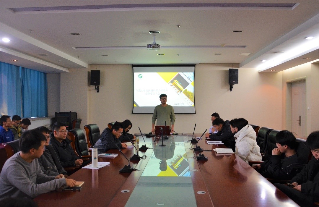 光伏材料重点实验室在科技楼A610会议室召开研究生大会,全体研究生和谭永涛老师参加,会议由实验室研究生分会主席郭明轩同学主持。大会主要分为三项议程: