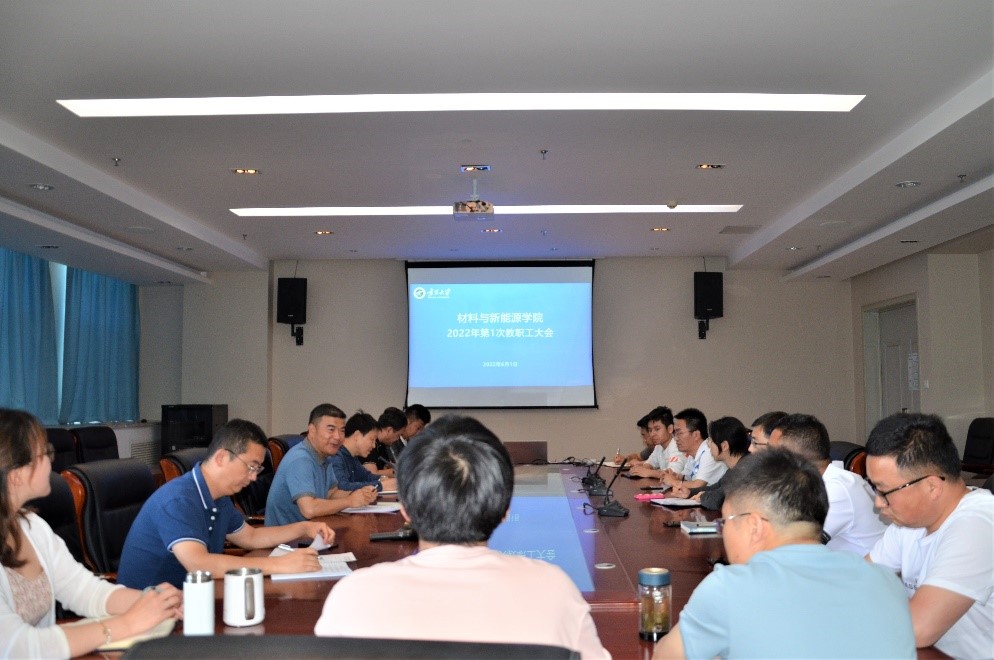 2022年6月1日下午,学院在科技楼A610会议室召开成立以来的第一次教职工大会,全体教职工参会。
