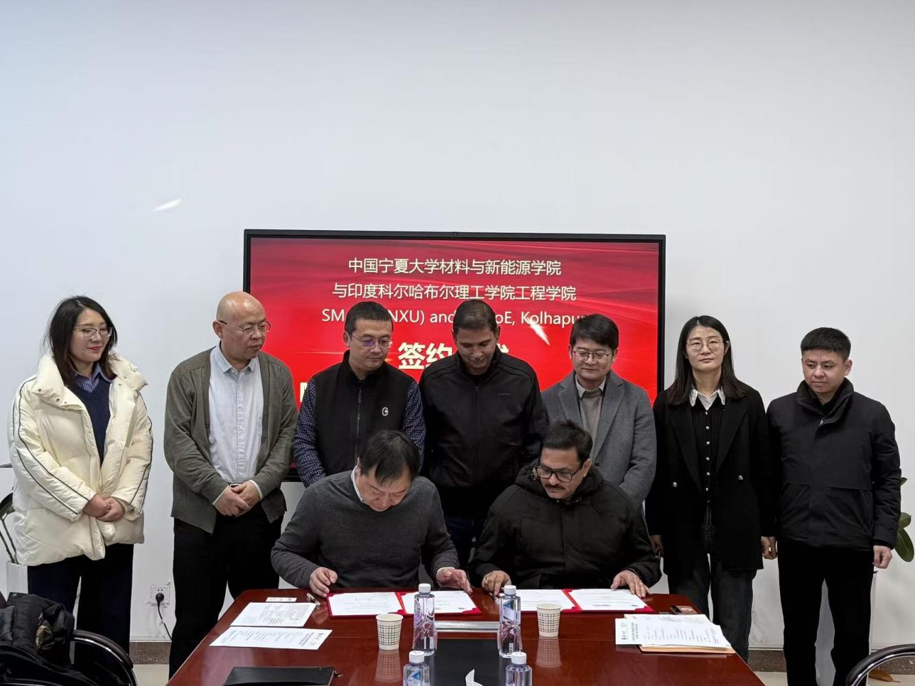 学校对外合作交流处副处长聂静,学院领导班子成员及相关教师,印度科尔哈布尔理工学院工程学院理事Mohan B. Vanarotti、秘书Diapak Chougule参加仪式。