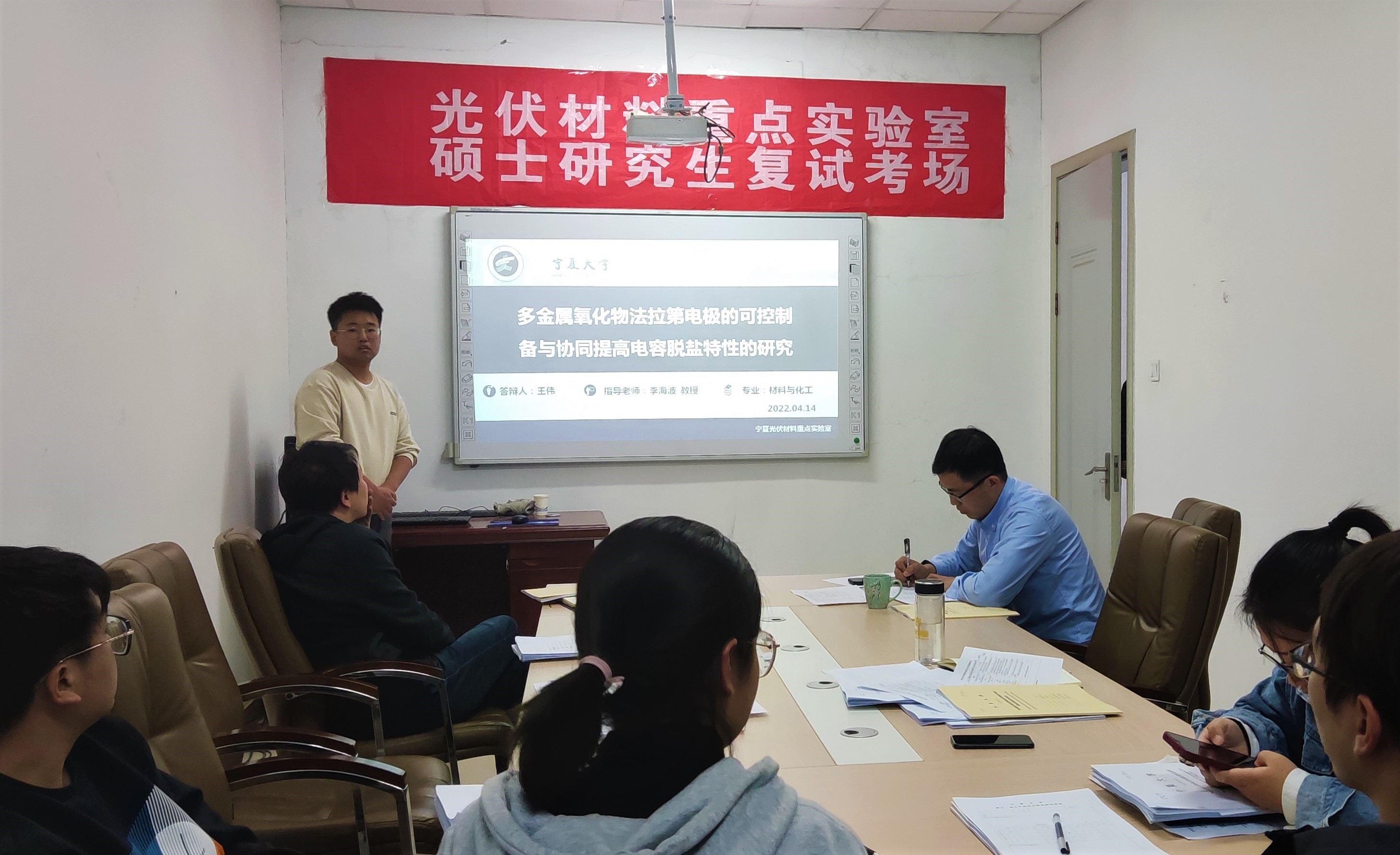 2022年4月14日,宁夏光伏材料重点实验室2019级学术硕士研究生、2020级专业硕士研究生毕业论文预答辩会,分别在科技楼A610、B603 (上、下午) 会议室举行。评议过程采用了导师回避制度。