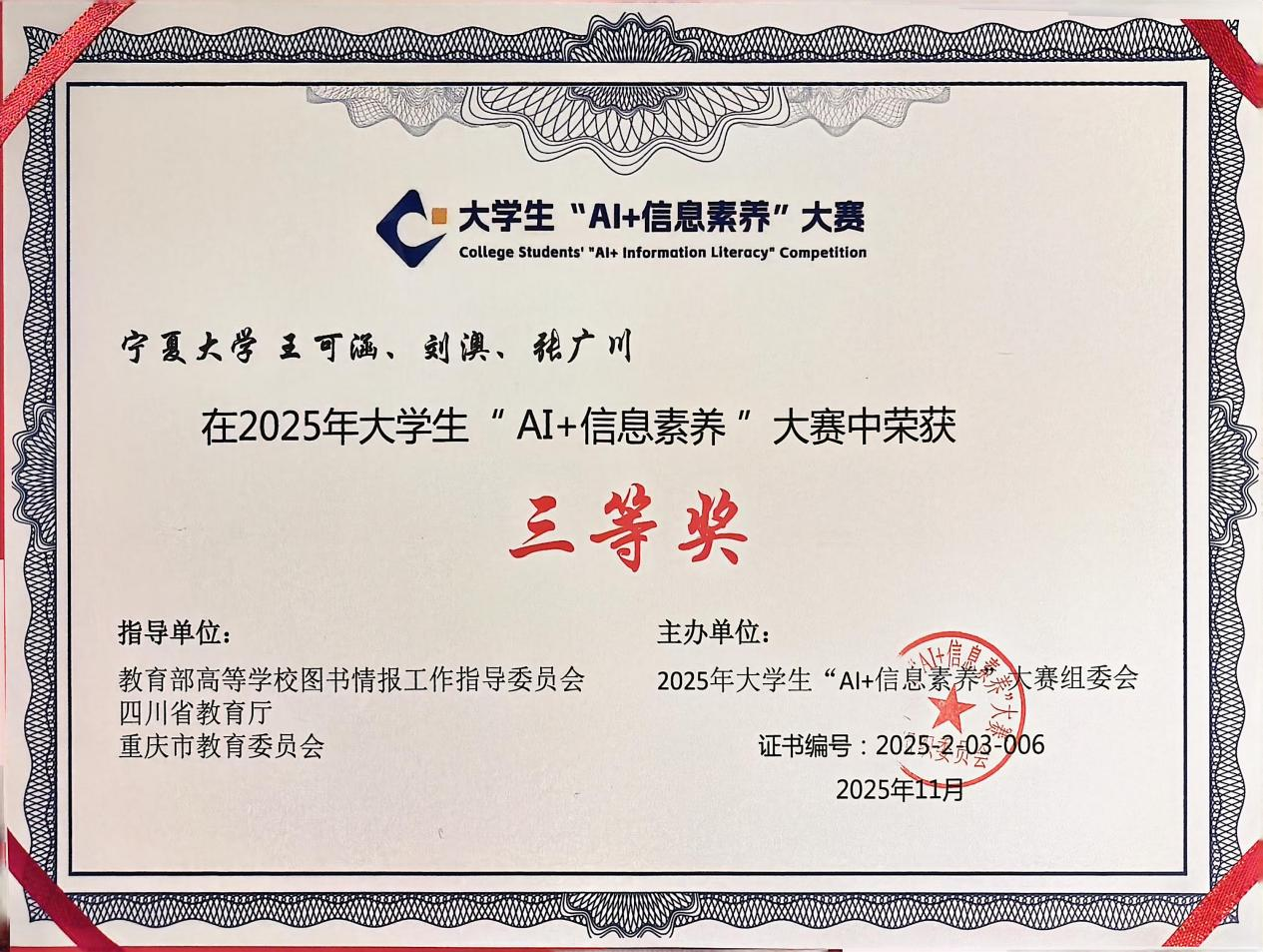 在信息素养教育与学科交叉融合培养方面的显著成效。学院将以此次大赛为契机,持续深化信息素养教育改革,搭建更多学科实践与创新平台,助力学生全面发展,为培养高素质创新型人才奠定坚实基础。