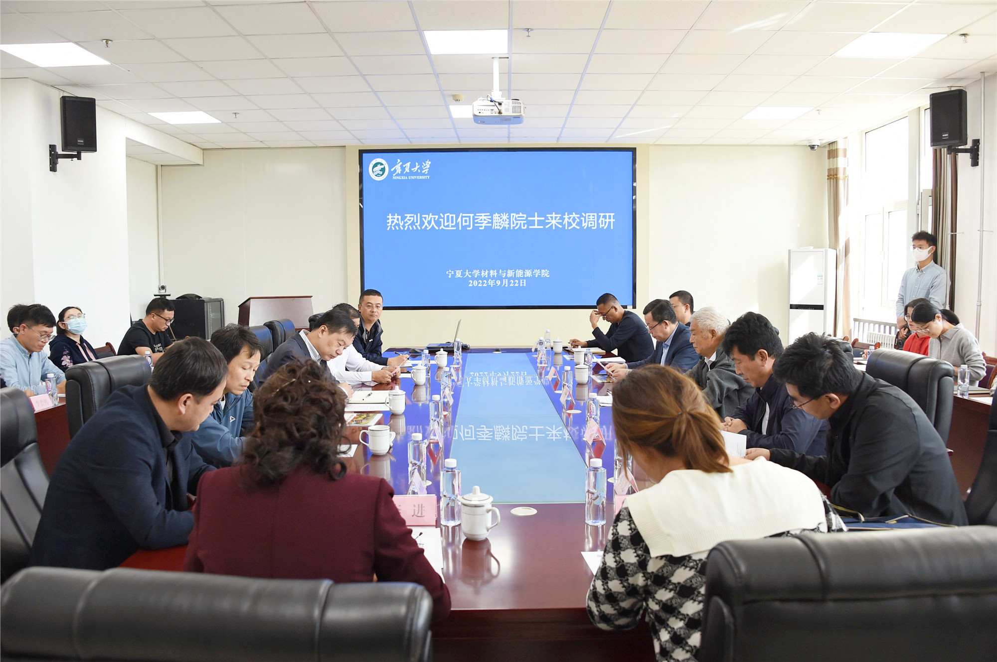 9月22日,中国工程院院士何季麟来校交流调研,校党委副书记王玉炯陪同调研宁夏光伏材料重点实验室,并主持座谈会。