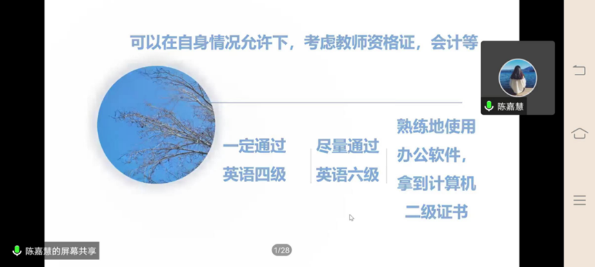 为了更好地帮助2022级新生对崭新的大学生活有全面的了解和认识,尽快适应大学生角色,明确自己的方向,树立自己的目标。2022年10月10日晚上,学院通过腾讯会议线上举办了以“实现角色转变,适应大学生活”为主题的经验交流会,学院研究生代表以及全体2022级新生参加。